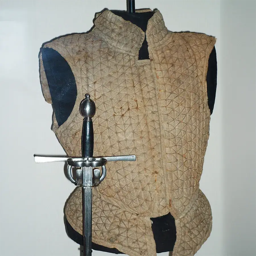 Gambesons and padded jackets were traditionally worn under armour or as standalone defences. They offered protection against bludgeoning weapons and helped cushion the wearer from the impact of blows. In the realm of LARP, where the combat is simulated, but the physical activity is real, the gambeson still serves a crucial protective function. However, today's LARP gambesons go beyond mere functionality. Material innovation is central to the evolution of the LARP gambeson. Whereas historical versions were made from layers of linen, wool, or even old clothes, modern versions often incorporate advanced, lightweight materials like polyethylene foams or high-density polyesters. These materials provide similar levels of protection and insulation but with less bulk and weight, increasing the wearer's comfort and mobility.