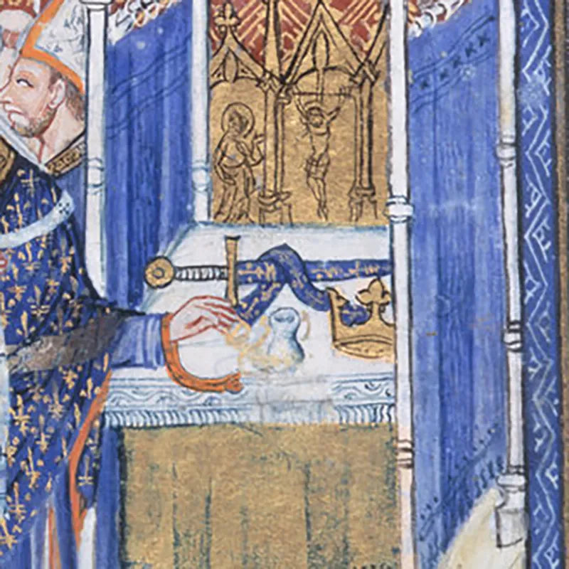 Charlemagne, also known as Charles the Great, was a medieval emperor who ruled much of Western Europe from 768 to 814. His legendary sword, Joyeuse, was said to have a scabbard of extraordinary craftsmanship. According to historical texts, the scabbard was adorned with gold and precious stones, reflecting the immense power and wealth of Charlemagne. The scabbard and the sword symbolised the divine right to rule and were a key emblem of the Carolingian Renaissance.