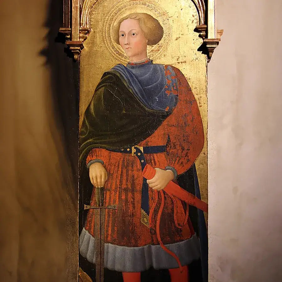 The scabbard of this sword, preserved for centuries in the Montesiepi Chapel near Siena, Italy, is often overlooked due to the miraculous nature of the sword itself. However, it symbolises the transition from a life of violence to one of peace and devotion, making it a significant relic in Christian history.