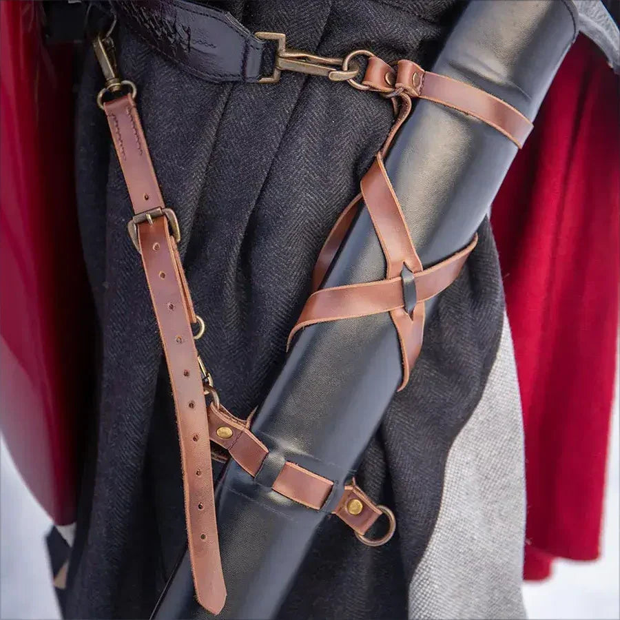 The true brilliance of the Adjustable Scabbard is found in its intricate strap system, which allows for extensive customisation. With an array of straps, rings, and a snap hook, warriors can adjust the scabbard's length and how it hangs, ensuring a bespoke fit for any battle stance. Designed to be worn on either hip and to cater to both left and right-handed users, this scabbard promises both comfort and style. To fully grasp the possibilities offered by this innovative scabbard, we encourage you to watch our video demonstration, highlighting its ease of use and the breadth of customisation available. Embrace the future of armament with the Adjustable Scabbard, where practicality meets personal expression.